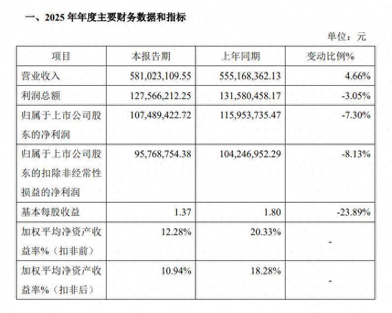 2月24日晚间,瑞华技能(920099)发布2025年年度事迹快报,闪现公司旧年全年终了商业收入5.81亿元,同比增长4.66%开云体育,包摄于上市公司股东的净利润1.07亿元,同比下落7.30%。