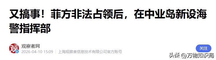 2026-04-10不雅察者网《又搞事!菲方犯警占领后,在中业岛新设海警疏导部》