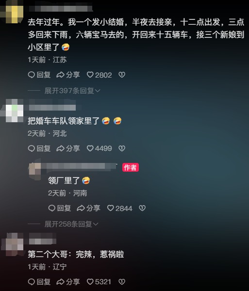 张先生先容,今日上班路上遭逢了这一滑婚车车队,“我从傍边抄曩昔了,之后我也没看重后边,成果到厂子里后发现背面唰唰唰全来了,我说详情是跟错车了。”
