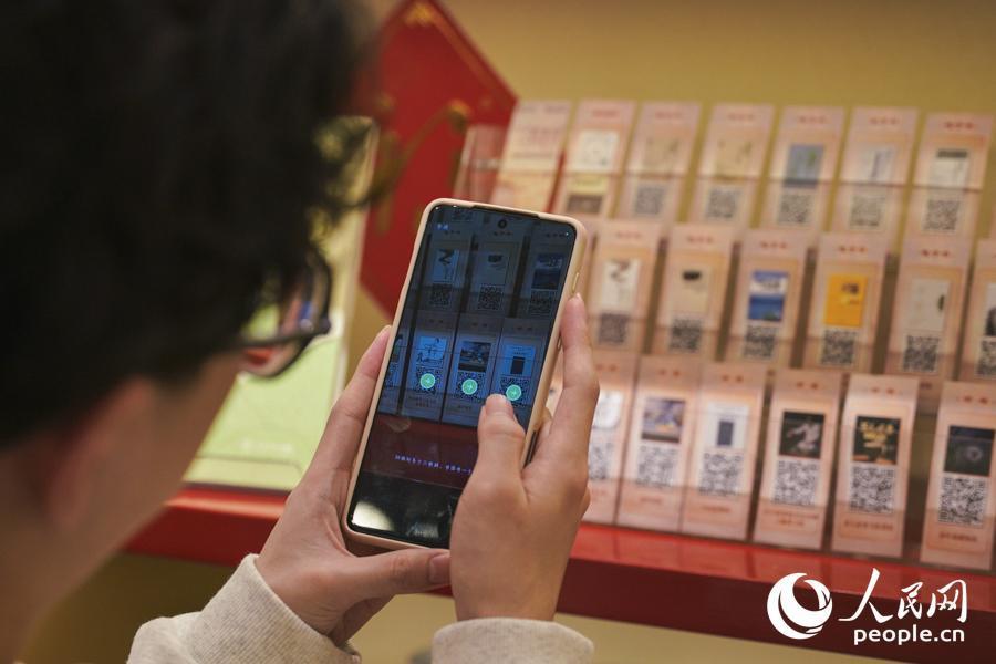 读者扫码浏览茶文化电子资源。实习生 郑舒尘摄