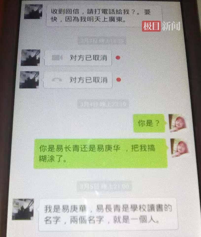 直到2020年3月的一天,易华给李海玉打来视频电话,称我方随即要出门打工,约李海玉碰头。由于对方一直使用易华的名字,李海玉莫得笔据发挥易华等于当年的易长青。她决意快刀斩乱丝,发微信问他,你到底是易长青还是易华?对方修起,我方叫易华,但易长青亦然他,是他昔时用的名字。李海玉立马把截图发给了母亲,让其打印出来送到公安局。